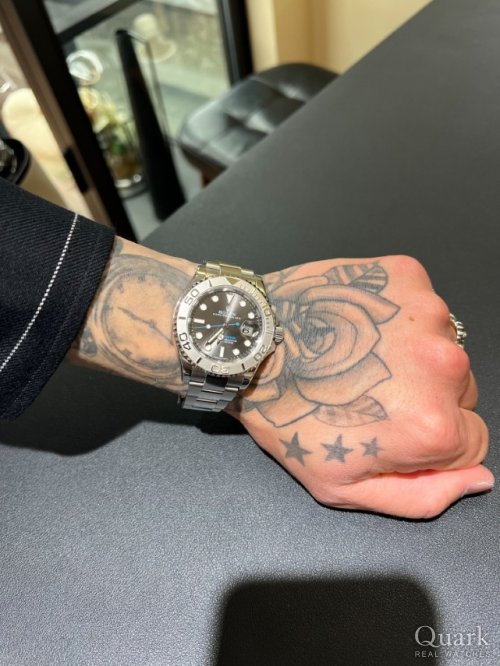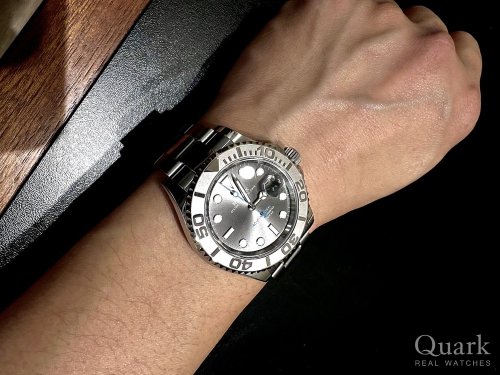 M様 この度は数多くある時計店の中よりクォーク銀座店を御利用頂き誠にありがとうございます。弊社のYOUTUBEをキッカケにご来店いただき、ファーストロレックスのご案内をM様にさせていただきました事心より嬉しく光栄に存じます。流通数の少ないチタン製ヨットマスターRef.226627は2023年に発売が開始され今までのロレックスにはない特別なモデルでございます。ボリュームのある42mmケースですがチタンを採用している為、軽快にご使用いただけ普段使いにもお勧めなお時計でございます。 末永く素敵なロレックスライフお送りいただけるようアフターフォローに努めて参りますので、気になる点等ございましたらお気軽に私(山田)までご連絡下さいませ。お近くにお越しの際はぜひお気軽にお立ち寄りいただけましたら幸いでございます。末永いお付き合いの程よろしくお願い申し上げます。クォーク銀座店 山田