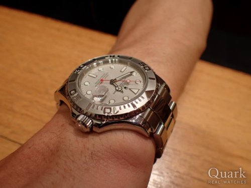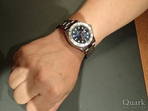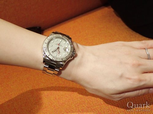 YACHT-MASTERの37mmケースサイズ、Ref.268621 ブラウンダイヤルを最初に見せて頂き、綺麗だと思ったのですが、普段の格好がカジュアルな装いが多く、服に合わせるならシルバー色のRef.16622の方が合わせ易いと思い選びました。時計を着ける迄は大き目のサイズ(40mm)への抵抗がありましたが、いざ着けてみると悪くない処か、時計が引き立って見えて、アクセサリーのアクセントとしても素晴らしいと思います。