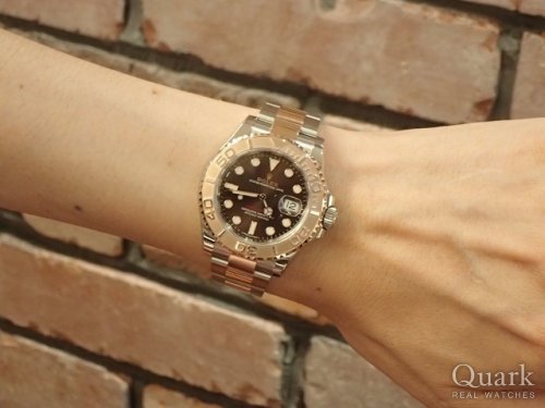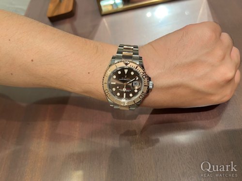 コンビ素材の時計を探しており、当初はロイヤルオークも良いかと検討しておりましたが、行きつけの洋食屋のオーナーさんが時計マニアであり、その方がロレックスの方が良いと教えてくれたこともあり、クォークさんでの購入を決めました。またチョコレートダイヤルとピンクゴールドの色合いも良く、肌なじみが良かったのも決め手の一つです。