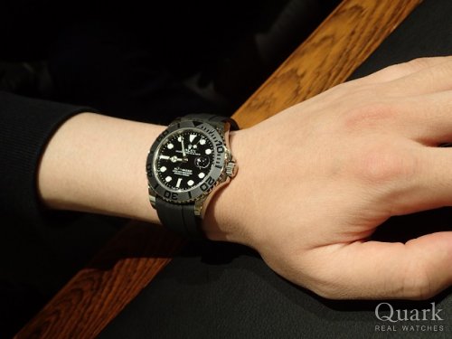 M様、この度はクォーク仙台店をご利用頂きまして誠にありがとうございました。お求め頂きました『YACHT-MASTER Ref.16622』は、赤い秒針、ダイヤル内の赤いモデル名表記がスタイリッシュ且つ、スポーティに映える人気生産終了モデルです。ブレスレットをクォーク別注ラバーベルトに変更頂いた事でより一段とスポーティさが演出できる仕様となりましたね。M様ご所有のコレクションとも一味違った装着感や雰囲気を存分にお楽しみ頂けるかと思います。是非、次回ご来店時にご感想をお聞かせください。M様のまたのご来店を心より楽しみに致しております。