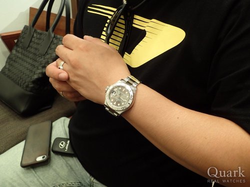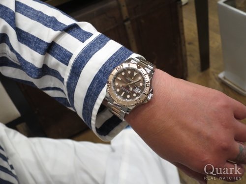 Thank you for coming to our store and purchasing the watch. Yacht Master is a luxury sport model, and I think the beauty of dial color is one of the best. It looks really nice on you. I hope you are satisfied with the watch and my service. Hope you can meet your family in the UK and come back to Japan for work. Finally, regarding the cleaning, we offer the complimentary service which is cleaning your watch bracelet and case. Please stop by our store. Look forward to seeing you.