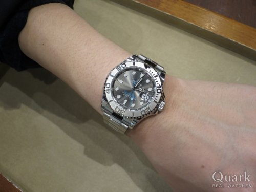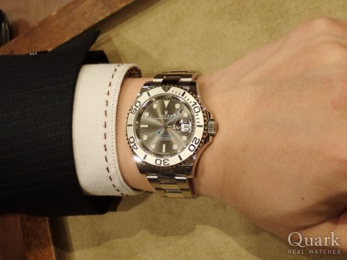 T様 この度は、私共クォークをご利用頂き、誠に有難う御座いました。ご購入頂きましたヨットマスター・ダークロジウムダイヤルは、まさに、格好いい大人の時計という感じで、とてもステキですね。シックで落ち着いた中にも、秒針やモデル表記の水色が遊び心を感じさせるお洒落なデザインになっており、大変人気の高いモデル御座います。文字盤がとっても綺麗で、見ていて飽きることがない感じがしますね。以前ご愛用のサブマリーナーは、男の格好良さが感じられるモデルだったかと思いますが、エンボス加工という独特の立体感のあるベゼルや、丸みを帯びたケースライン、ブレスレットの輝き等、この度のヨットマスターは、全く新しい雰囲気でロレックスを楽しんで頂けるのではないかと思います。また、2016年の登場から3年目と、まだまだ新しいモデルの為、周りでもお持ちの方は少ないのではないかと思います。ご自慢の1本となりましたら嬉しく思います。今後は、安心してご愛用頂けますよう、しっかりとサポートさせて頂きますので、ご不明な点等が御座いましたら、お気軽にご連絡ください。また、近くにお越しの際には、ブレスレットのクリーニングも兼ね、お立ち寄りください。ヨットマスターの感想を是非、聞かせてくださいね。お待ちしております。この度は、誠に有難う御座いました。今後とも、末長いお付き合いの程、どうぞ、宜しくお願い致します。 クォーク仙台店 麻生