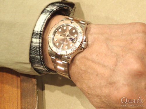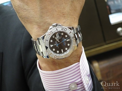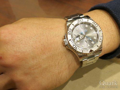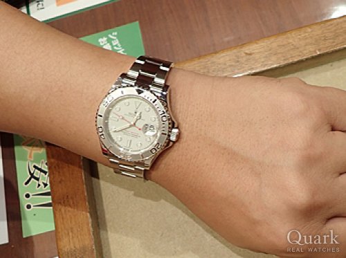 K様、この度はクォーク神戸店をご利用頂きまして誠に有難うございました。いつもこのような素晴らしい記念に、弊社をお選び下さり、心より感謝申し上げます。本当に有難うございました。今回ご購入頂きましたモデル、ヨットマスターRef.116655は、ロレックスのモデルの中では数少ないラバータイプ(オイスターフレックス)モデルで、ケースやバックルはオール18KPG(エバーローズ)仕様となります。高級感はもちろん、男らしい色のバランスなど魅力的な要素が詰まった一本です!ご試着頂いた瞬間からとてもお似合いで、見惚れるかっこ良さでございました。末永くご愛用頂けましたら幸いです。今後もご指名頂けるようしっかりとサポートさせて頂きますので、何かご要望などございましたら私井内までお申し付け下さいませ。また、ブレスレットの洗浄及び調整も無料で行っておりますので、お近くに来られた際には是非遊びにいらして下さい。心よりお待ちしております。 クォーク神戸店 井内