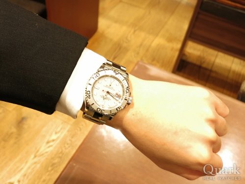 S様 この度はクォーク梅田店をご利用頂きまして誠に有難うございました。ご購入頂きましたヨットマスターは、高級感溢れるグレーの文字盤に水色の秒針が良いアクセントになっており、とてもオシャレでカッコイイモデルです。モデル発表時から、品薄が続いている人気モデルで着用されている方がまだ少ない為、かぶりにくい点もいいですよね。S様にとてもお似合いでございました。末永くご愛用頂けましたら幸いでございます。今後もご指名頂けるようしっかりご対応して参りますので、今後共クォーク梅田店を宜しくお願い致します。また、ブレスレットの洗浄及び調整なども無料で行っておりますので、近くに来られた際は是非遊びにいらして下さい。心よりお待ちしております。  クォーク梅田店 川田