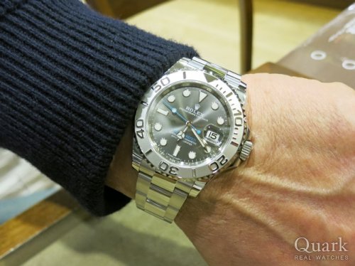 H様 いつもクォーク広島店をご愛顧頂き誠に有難うございます。又、この度はヨットマスターロレジウムをお買い求め頂きまして、重ねてお礼申し上げます。惜しまれながらも生産が完了したプラチナ文字盤は、おっしゃって頂いた通り上品な高級感があり、シンプルでありながらも、他モデルにはない特徴的なデザインも魅力ですね!H様のロレックスコレクションの中でも、しっかり使い分け出来る1本だと思います。是非、末永くご愛用頂けます様、願っております。またお使い頂く上でご用命の際にはお気軽にお申し付け下さいませ。今後とも宜しくお願い致します。