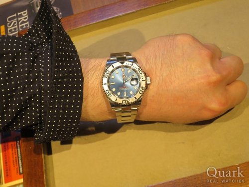 N 様、いつもクォークなんば店をご利用頂きまして誠に有難うございます。サブマリーナーに続いて今回はヨットマスター。ブルー文字盤の色目が非常に綺麗な1本です。エンボス加工が施されたプラチナ製のベゼルも上品な高級感があって良いですね!サブマリーナーとは一味違う大人の雰囲気を楽しめる時計です。普段使いに・・との事でしたが、ご使用の際はベゼルをぶつけたりしないよう気を付けて下さい!また難波にお越しの際はクォークなんば店までお気軽に遊びにいらして下さい。 クォークなんば店 佐野
