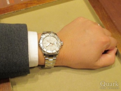 他のブランドも考えていたので当初は現物を見て考えよう、、という感覚でしたが、買ってしまいました。今、40mm径の新型ヨットは欲しいだけでは買えないという流通量の少なさも魅力で、何よりも問い合わせたタイミングが絶妙だったということが一番のポイントかもしれません笑。