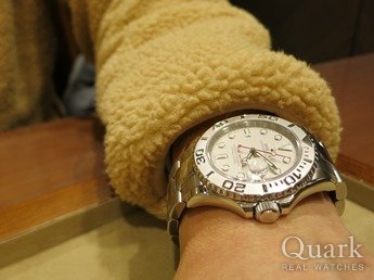 以前にクォークさんでGMTマスターIIを購入しましたが、違ったタイプが欲しくなり、プラチナベゼルとブルーダイヤルの組み合わせが気に入り、このヨットマスターを購入しました。