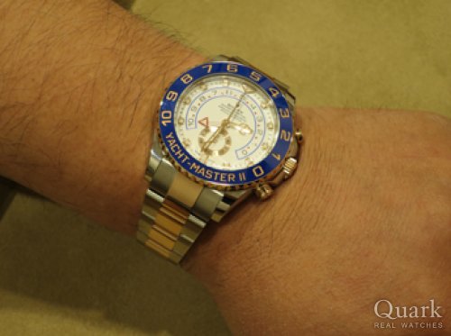 S様、この度はクォーク心斎橋店をご利用頂き誠に有難うございます。ロレックスの中でも大型で一際個性を放つモデル「ヨットマスターII」。ピンクゴールドとステンレススチールのコンビモデルはラグジュアリーで存在感がありますね。出回っている本数も少なく人と違う物をお探しのS様の趣向にピッタリのお品だと思います。また、ご使用方法等複雑な箇所もございますので、不明な点があればお気軽にお問い合わせ下さい。ブレスレットの洗浄も行っておりますので、近くにお立ち寄りの際は是非お申し付け下さい。今後ともクォーク心斎橋店を宜しくお願い致します。 クォーク心斎橋店 山崎