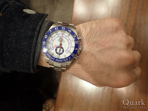 B様、この度は当店を御利用頂き誠に有難う御座いました。ヨットマスターIIは44mmサイズということもあり他のスポーツモデルよりもさらに存在感があるモデルで、B様のたくましい腕にとてもお似合いでした。またベゼルと連動するカウントダウン機能も機械式時計の奥深さとして是非お楽しみ頂ければ幸いです。御時計のことに関してお手伝いできることなど御座いましたら是非お声掛け下さいませ。今後ともどうぞよろしくお願い致します。クォーク名古屋店 長瀬