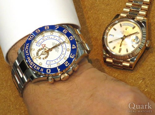 Y様 この度はクォーク名古屋店をご利用頂き、誠にありがとう御座います。またヨットマスターIIに続けてディープシー Dブルーもご購入頂き、本当にありがとう御座いました。元々入荷数が少ないモデルとなる為、今回ご案内をする事が出来、私自身もとても嬉しく思っております。18Kホワイトゴールドの金無垢モデルとなるヨットマスターIIは、ベゼル部分にはプラチナ素材を採用しており、他に無い高級感が漂うラグジュアリーなモデルです。存在感のある44mmサイズにホワイトゴールドならではの重量感をこれからは存分に堪能して下さいませ。アフターサービスに関しても精一杯努めさせて頂きますので、今後も御時計のご相談等が御座いましたら、私まで頼って下さい!また素敵なお写真まで頂き、ありがとう御座いました♪栄にお越しの際は、お気軽に遊びにいらして下さい。またY様にお会い出来る日を楽しみにしております。