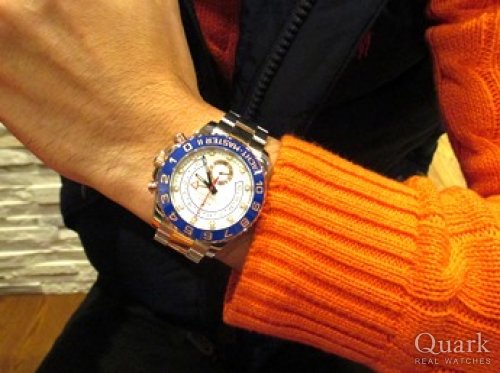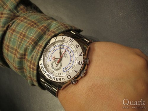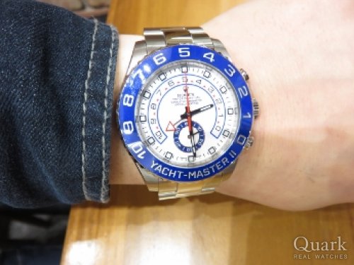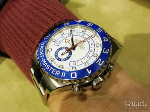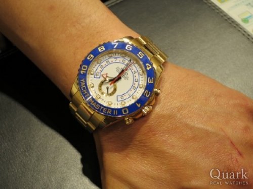 U様 この度はクォーク梅田店をご利用頂き、誠にありがとうございます。高級腕時計のロレックスの中でも特に異彩を放つのが、このヨットマスターIIです。しかも金無垢モデルともなれば、重量感・質感共に最高の満足度を感じて頂けるでしょう。ご使用される中で気になる点などございましたら、お気軽にお尋ね下さいませ。今後とも当店を宜しくお願い申し上げます。      クォーク梅田店 東