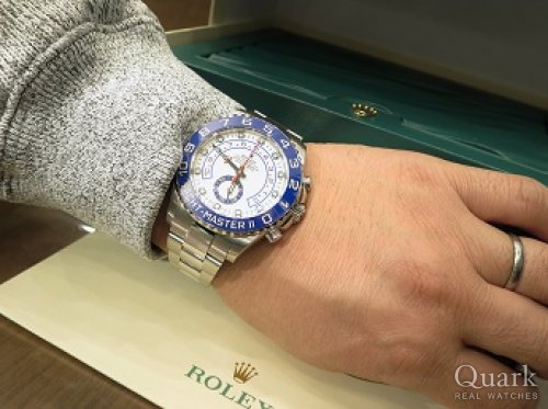 Y様 いつもクォーク名古屋店をご利用頂き、誠にありがとうございます。今回お選びになったヨットマスターⅡ(Ref.116680)は白・青・赤のバランスが絶妙に取れているデザインでとても魅力的なモデルです。プライベートシーンだけではなく、ビジネスシーンでも合わせられる方も多くいらっしゃいます。再び始まる、ロレックスライフを存分に楽しんで頂けたら幸いでございます。引き続き、しっかりとサポートさせて頂きますので、何かご不明な点等がありましたらお気軽にご相談下さいませ。