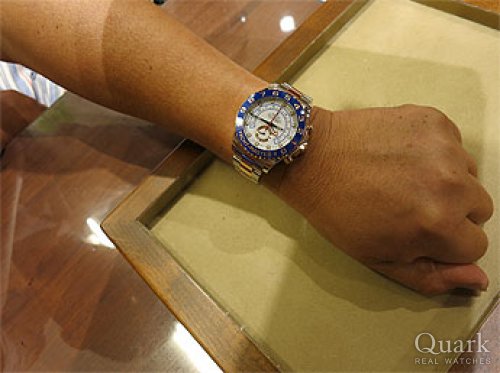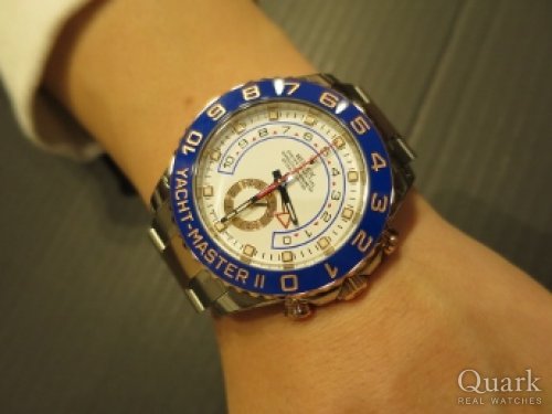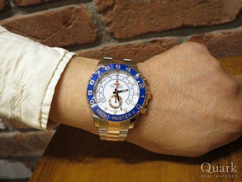 いつもクォーク横浜店をご愛顧頂きまして誠にありがとうございます。今週の初めにこのヨットマスターIIのお問い合わせを頂いてから4日足らずでご決断頂くとは驚きました!ヨットマスターIIはO様にとっても似合っておりました!O様が帰られた後もスタッフの間で似合っていたと話題でしたよ☆大振りなサイズも、カラーも、全てがピッタリでしたね!初めてお使い頂くとは思えないくらいしっくりきていて、使い方もほぼ一発でマスターとは、恐れ入ります!(笑)この夏はヨットマスターIIと共に素敵な思い出が出来ますように!!無料のブレス洗浄も承っておりますので、いつでもご利用下さいませ。またお会い出来る日を楽しみにしております。 クォーク横浜店 長本