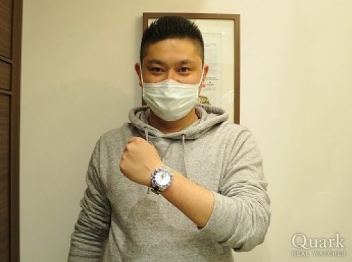 K様、この度はクォーク神戸店をご利用頂きまして誠にありがとうございました。44mm径の迫力のケースに色鮮やかな青いセラミックベゼルが、かなりカッコイイですね!また、高級感あるデザインで、まさに一生モノに相応しい1本かと思いますので末永くご愛用頂ければ幸いです。使用方法など、ご不明な点がございましたらお気軽に私宛までお申し付け下さい。今後共クォーク神戸店をよろしくお願い致します。 クォーク神戸店 増田