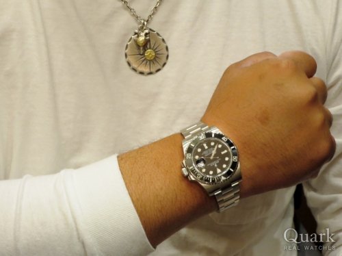 この度は、クォーク横浜店にてロレックスをご購入いただきまして誠にありがとうございました。流石に人気のGMTマスターII赤青ベゼル、特にZシリアルの高年式モデルは、最初にご相談いただいた際には、他の在庫は商談中だったりと、すぐにご案内出来る商品が無かったのですが、必死にお探ししましたら、幸運にもメンテナンス中の商品の中に抜群のコンディションの個体を見つける事ができ、更に偶然にも、ご希望の日程でご紹介できる事が出来た事は、本当にラッキーで、これぞ正にご縁かと思います。ベゼルの赤青カラーもしっかり色が出ており、ケースコンディションも抜群。素晴らしいコンディションです。アパレル業界のお洒落なM様に赤青のツートンカラーがとても似合っておりました。これからも様々なファッションでGMTマスターIIをコーディネートしていただければ幸いです。ブレスレットの洗浄サービス等、お気軽にご利用くださいませ。またお会いできる事を楽しみにしております。 クォーク横浜店 長本