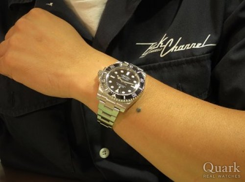 いつもクォーク横浜店をご愛顧頂きまして誠にありがとうございます。お電話やメールではお話していてもタイミングが合わず、本当に久しぶりの再会に、テンション上がりました!そしてシード4000のサイズ感、とても似合っていました!!シェイプしたケースが現行のサブにもディープにも無い雰囲気で、少しマニアックなこのシード4000は私個人的にも好きなモデルの一つです。奥様からのプレゼントとして皆で選んだ特別なお時計、思い出と共に楽しんで使ってあげて下さいね。次回はディープ?青サブ?ですかね(笑)遊び時計として買い足すのも良いですね。これからもお力になれるようがんばりますので、どんな事でもお気軽にご相談下さいませ。 クォーク横浜店 長本