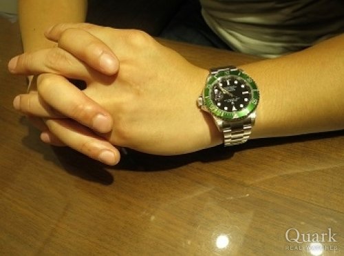 20歳の記念でデイトジャストを購入してから10年。10年毎にロレックスを買おうと自分の中で決めていました。これから10年また頑張るために選んだのはグリーンサブです!現行とも悩みましたが旧型の方がカッコイイし着け心地も良かった。たまたま立ち寄ったクォークさんで良い出会いがあって本当に嬉しいです!