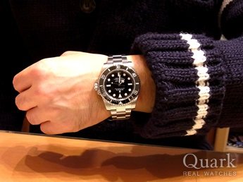 エクスプローラーI Ref.214270と迷いましたが、シンプル過ぎたのでサブマリーナーを選びました。季節に関係なく一年中使っていくのであれば、シンプルでボリュームのあるRef.114060がいいと思いました。拡大レンズが付いていない、フラットなデザインが気に入ってます。着けた感じは、かなりしっくりきています。クォークさんは前回も購入しましたが、みなさんサービス、対応が良いと感じました。