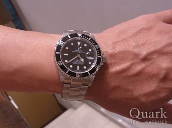 以前から購入を考えていたロレックスの サブマリーナーデイト!! 現行タイプか旧型タイプにするか、 どちらもかっこ良くとても迷いましたが、 両方とも試着してみると、私の腕にはシャープな デザインの旧型サブのほうが相性が良く購入を 決めました!