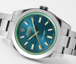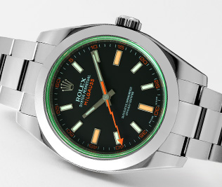 ロレックスが時代に先駆けて開発した耐磁時計「初代ミルガウス」は、伝説的なヴィンテージモデルとして非常に有名です。そのアイコンとなっている「稲妻を象った秒針」を継承し、2007年に復活したミルガウスは、時代のニーズに合った高い耐磁性とケースサイズで高い評価を獲得しています。中でもロレックスで唯一グリーンサファイアクリスタルが採用されたRef.116400GVは、デビュー以来、高い人気を維持しています。