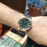 18Kピンクゴールド(エバーローズ)製ケースにラバーストラップ(オイスターフレックス)を装備したモデル。