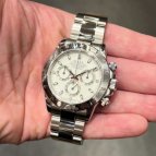 爽やかな印象のホワイトダイヤルは、視認性に長けておりエレガントさを追求するユーザーからの支持が高い。ブラックダイヤルに比べ販売本数は劣るが、並行輸入店での価格相場は約10万円安く、後にメーカーでのダイヤル交換も可能となる為、近年ホワイトダイヤルの人気も上昇している。