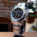 精巧な印象のブラックダイヤルは、インダイヤルのフレームとのコントラストによりデイトナのメカニカルなデザインを際立たせ、常にトップを争う圧倒的な人気を誇っている。