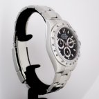精巧な印象のブラックダイヤルは、インダイヤルのフレームとのコントラストによりデイトナのメカニカルなデザインを際立たせ、常にトップを争う圧倒的な人気を誇っている。