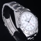 ホワイト文字盤のスポーツモデルが欲しかったのですが、種類は意外と少なく、デイトナは予算オーバーで手頃なものを探していたところエクスプローラーIIを発見。現行モデルとも悩みましたが、私の手首にフィットするのはコチラでした。ホワイト文字盤は清潔感があって、スーツにも合わせやすく重宝しています。