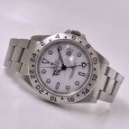ホワイト文字盤のスポーツモデルが欲しかったのですが、種類は意外と少なく、デイトナは予算オーバーで手頃なものを探していたところエクスプローラーIIを発見。現行モデルとも悩みましたが、私の手首にフィットするのはコチラでした。ホワイト文字盤は清潔感があって、スーツにも合わせやすく重宝しています。