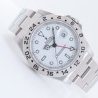ホワイト文字盤のスポーツモデルが欲しかったのですが、種類は意外と少なく、デイトナは予算オーバーで手頃なものを探していたところエクスプローラーIIを発見。現行モデルとも悩みましたが、私の手首にフィットするのはコチラでした。ホワイト文字盤は清潔感があって、スーツにも合わせやすく重宝しています。