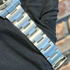 ブレスレットは、前モデルでは中空だった中央のリンクパーツが無垢パーツに変更され堅牢性がアップ。バックルにて容易に約5mmの微調整が可能なエクステンション機能であるイージーリンクを備えるなど利便性、着用時の快適性や着脱時の操作性を向上させている。