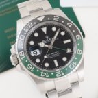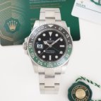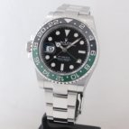 GMT-MASTER II初の緑黒ベゼルとリューズを左側に配置したデザインが特徴の大人気モデルです。