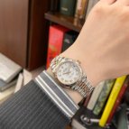以前から白文字盤のPG×SSを検討していました。陳列されていたYG×SSも気になってしまい実物を見ても悩ましく決めかねておりましたが、主人の意見と初志貫徹でこのモデルに決めました。機械式時計は初めて…