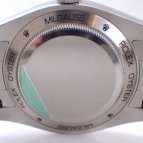 一つ目はカラー。一般的なサファイアクリスタルは透明であることに対し、Ref.116400GVのサファイアクリスタルのみグリーンである。