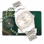 55歳誕生記念に購入。ロレックスの王冠マークと針等がゴールドでシルバーダイヤルのオイパ最高です!2年前に定年退官53歳誕生記念にミルガウスZブルーに続き購入できました!グリーンサファイヤガラス最…