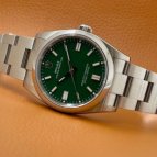 2020年に発表されましたOYSTER PERPETUALのカラーシリーズ。DATEJUSTで使用されておりますミントグリーンとは違い、マット地のカラーが採用されています。