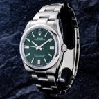 新色のグリーン(ロレックスカラー)が気に入って購入を決めました。大き過ぎず、使いやすい36ミリ径のケースサイズも好みです。
