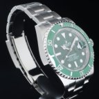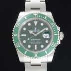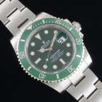 2003年にSUBMARINER誕生50周年を記念し発表されたRef.16610LVの次期モデルとして、デザインを受け継ぎながら、ダイヤルカラーをブラックからグリーンへ変更。長期間にわたり鮮やかな色彩を保持する耐蝕性と、耐傷性に優れたセラミックベゼルを搭載し、2010年にリニューアルを果たしたグリーンサブマリーナーRef.116610LV。水深300m(1,000フィート)でも信頼性と精度が保証されるといった長いサブマリーナーの歴史を受け継ぎながらも、随所に新しい技術を取り入れ、Ref.116610LN同様、高級感溢れるデザインと耐久性で、確固たる人気を築いている。ケースラグ部分の大型化によりさらに耐久性を高め、独自開発されたブルーパラクロム・ヒゲゼンマイの採用で耐磁性・耐衝撃性が向上。ベゼルにはプラチナ特殊コーティングが施された60分の目盛りが刻まれ、潜水時間と減圧停止を正確に測定することが可能。ブレスレットは、前モデルでは中空だった中央のリンクパーツがソリッドパーツに変更され堅牢性がアップ。バックルは堅牢性、高級感、実用性といったあらゆる面から改良が加えられた新型バックル、グライドロッククラスプを採用。使用者本人が工具なしでもブレスの長さ調節が容易にできるようになった。また、発光時間がルミノバ夜光塗料の約2倍(8時間)という長さのクロマライトを採用するなどサブマリーナーはダイバーズウォッチとして進化し続けている。