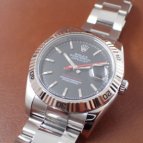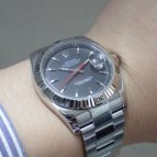 時間の計測に意外とよく使用する回転ベゼルのモデル。スーツに良く合うデイトジャスト系という事で仕事をメインに愛用しています。この後のモデルが登場していない事が残念ですが、その分持っている人も少なく被らないのがいいです。