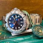 一度は卒業したロレックスですが、展示してあったブルーに輝くヨットマスターが目にとまり、手に取ってみたら買わずにいられなくなりました。